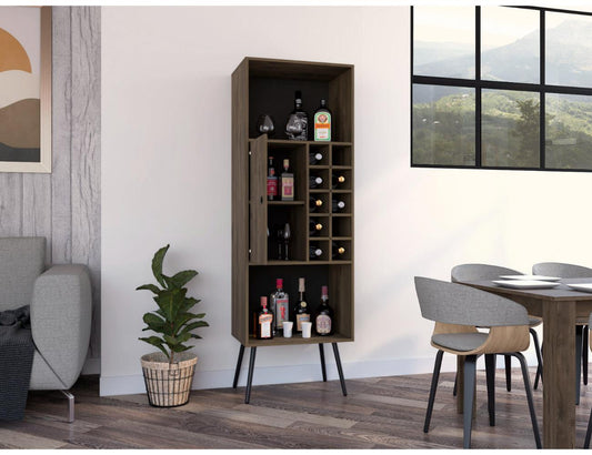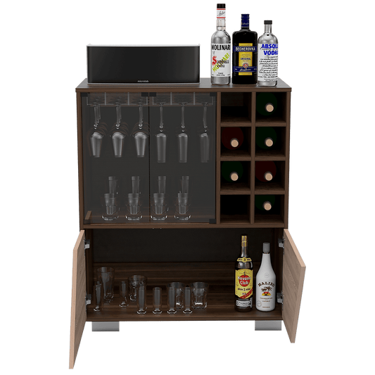 Bar Vilance, Nogal Y Wengue, Con Espacio Para Guardar Botellas De Vino Y Puerta Abatible