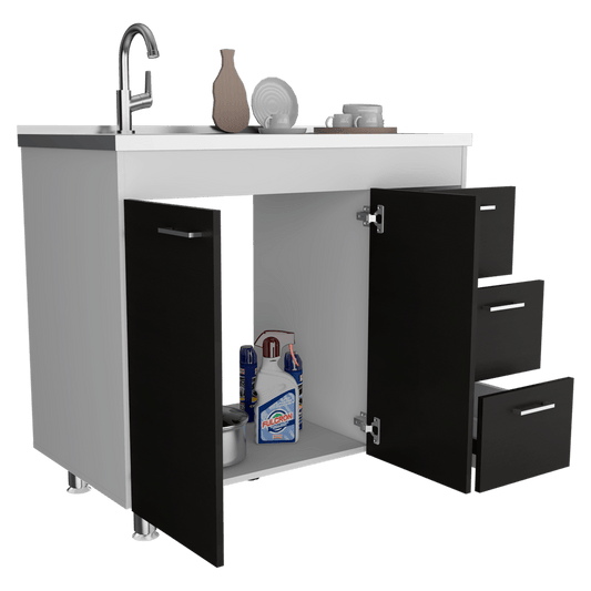 Gabinete Inferior Avorin Wengue Y Blanco 100 Cm