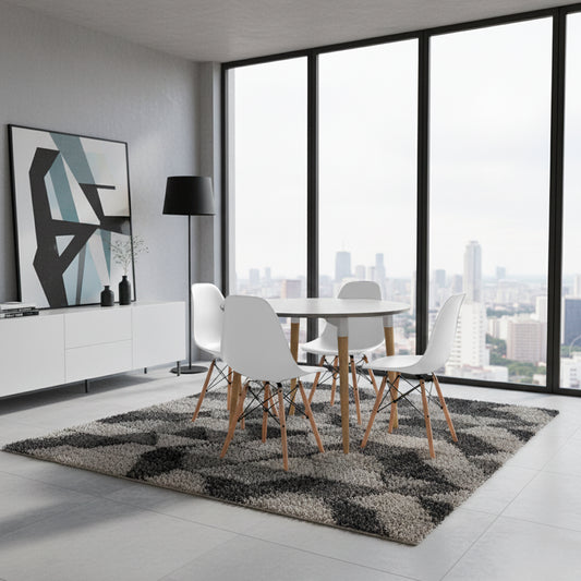Juego de Comedor White cuadrada con 4 Sillas Eames negras