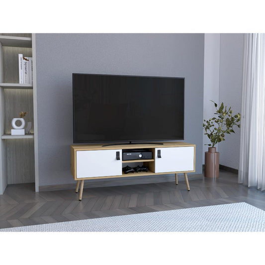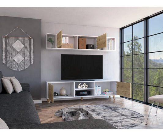 Mesa Para Tv Veluna Rovere Y Blanco, Con Espacio Para Televisor De 50 Pulgadas