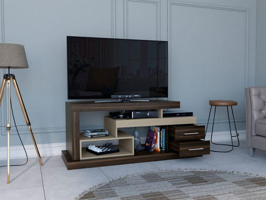 Mesa Para Tv Vamira Wengue Y Taupe Para Televisor De 55"