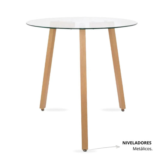 Mesa Redondo De Vidrio 3 Puestos 77X80X80