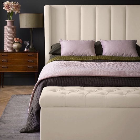Base Cama con Espaldar + Colchon + Puff Baul Sencillo Julieta beige
