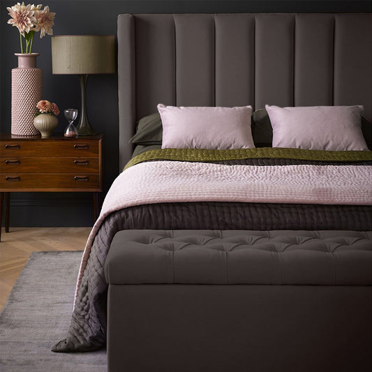 Base Cama con Espaldar + Colchon + Puff Baul Semidoble Julieta gris plomo