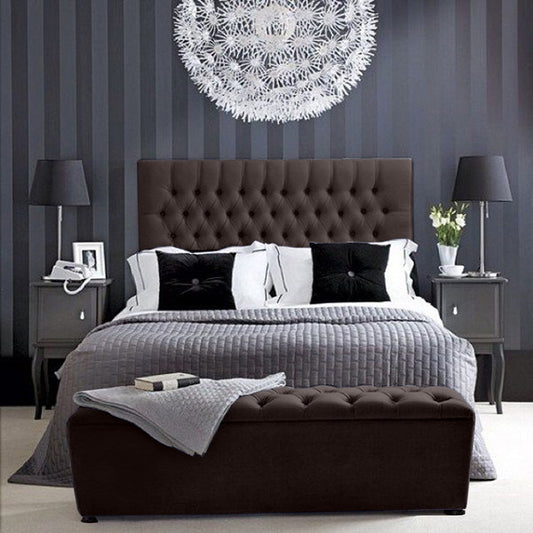 Base Cama con Espaldar + Colchon + Puff Baul Sencillo Julieta cafe