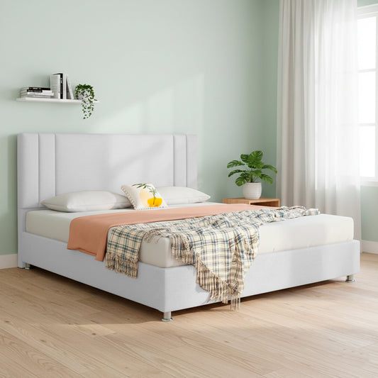 Base Cama con Espaldar + Colchon Doble Marfil gris plata