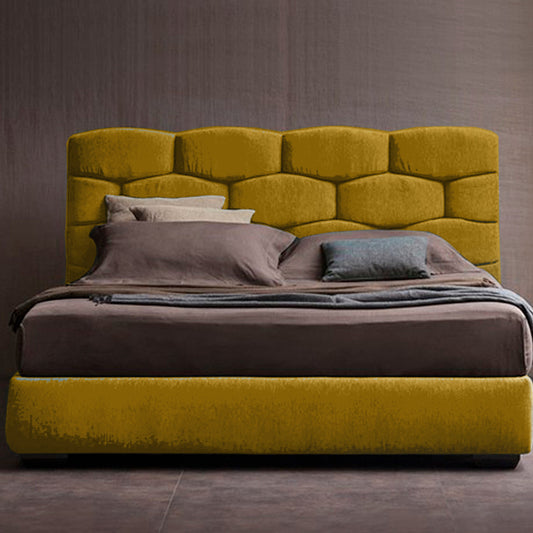 Base Cama con Espaldar + Colchon Semidoble Italia mostaza