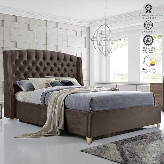 Base Cama con Espaldar + Colchon Semidoble Esmeralda taupe
