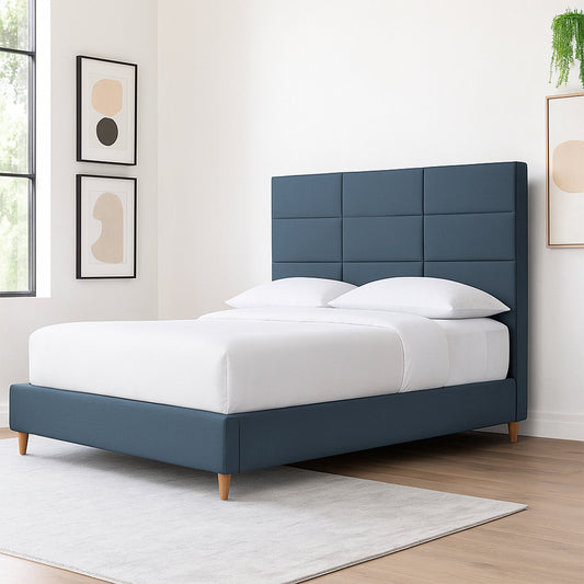 Base Cama con Espaldar + Colchon Sencillo Natura azul