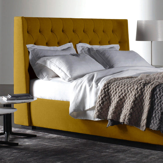 Base Cama Con Espaldar Doble Mousai Mostaza