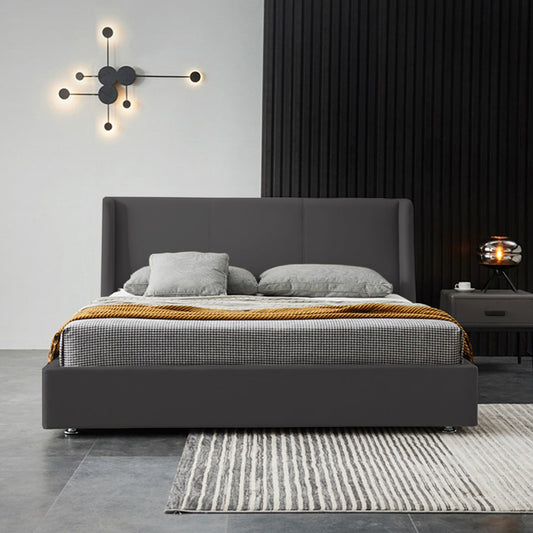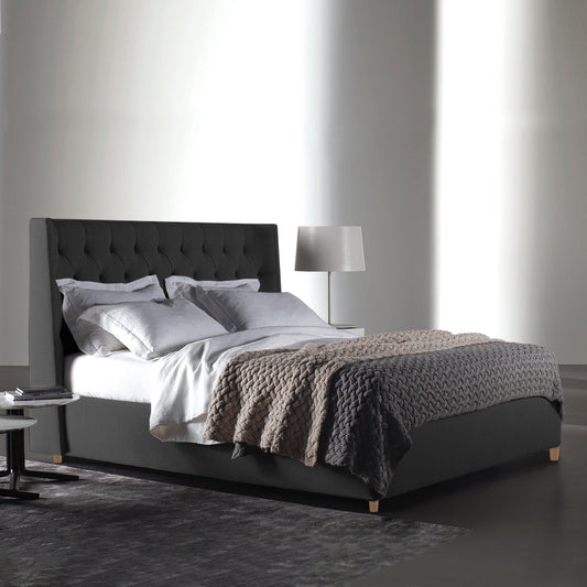 Base Cama Con Espaldar Doble Mousai Gris Plomo