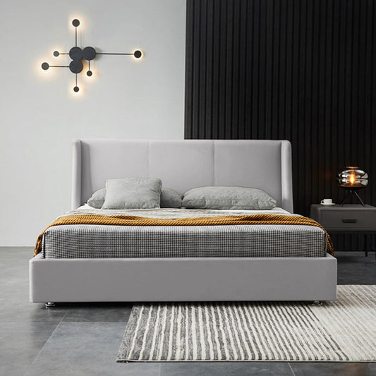 Base Cama Con Espaldar Doble Mousai Gris Perla
