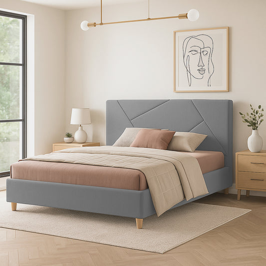 Base Cama Con Espaldar Semidoble Ilusion Gris Perla