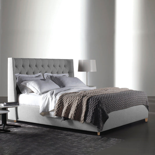 Base Cama Con Espaldar Semidoble Mousai Gris Perla
