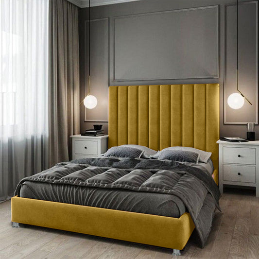 Base Cama Con Espaldar Sencillo Paris Mostaza