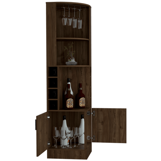 Bar Esquinero Minexa, Nogal, Con Amplio Espacio De Almacenamiento Y Porta Copas