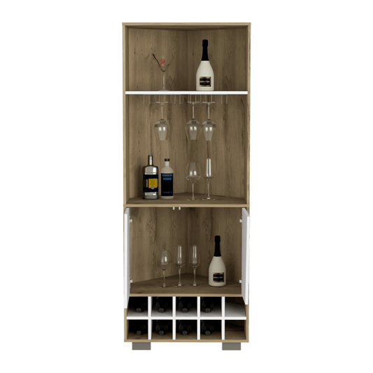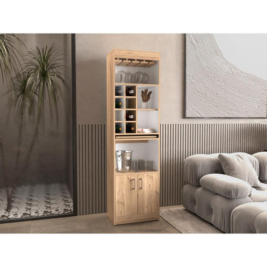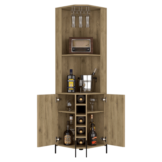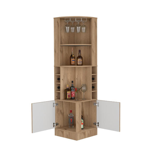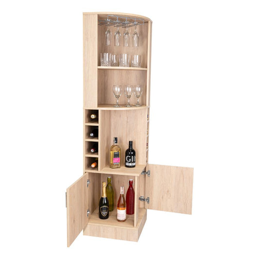 Bar Esquinero Alenor, Macadamia, Con Espacio Para Organizar Licores