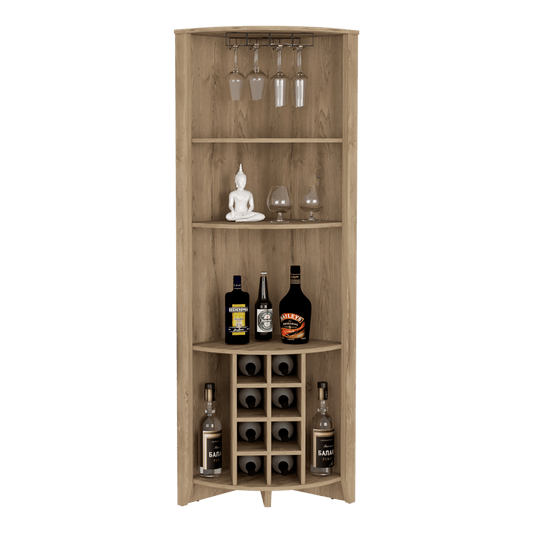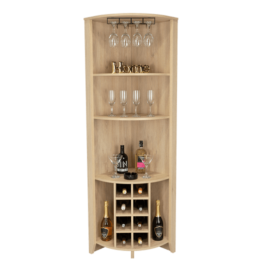 Bar Esquinero Minexa, Macadamia, Con Espacio Para Ocho Botellas Y Tres Entrepaños