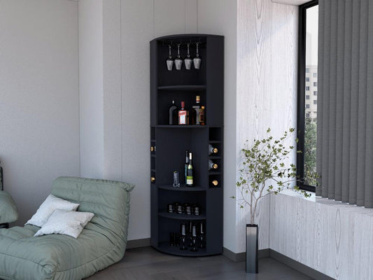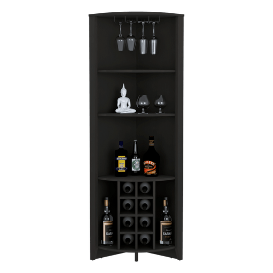 Bar Esquinero Minexa, Wengue, Con Espacio Para Ocho Botellas Y Tres Entrepaños