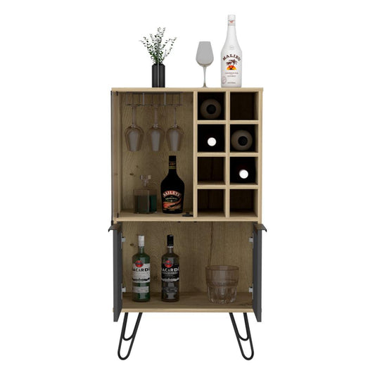 Bar Bajo Vany, Miel Y Plata Oscuro, Con Espacio Para Almacenar Botellas Y Copas De Vino