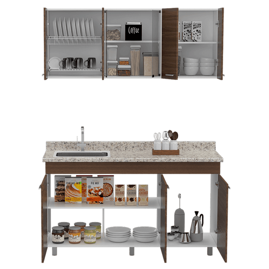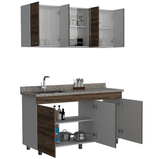 Cocina Integral Aurena Wengue Y Blanco Con Mesón Derecho