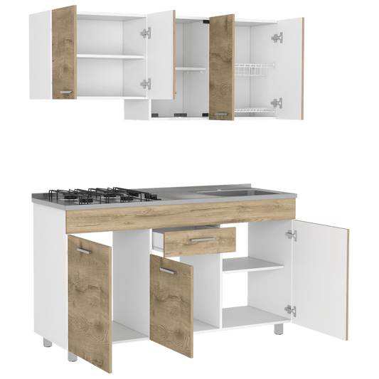 Cocina Integral Aurena Miel Y Blanco Con Mesón Izquierdo