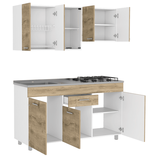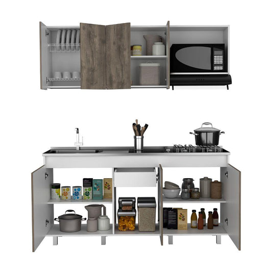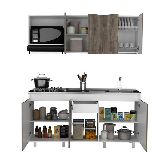 Cocina Integral Drevia, Blanco Y Gris, Incluye Mesón Izquierdo