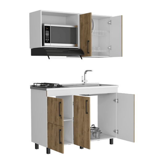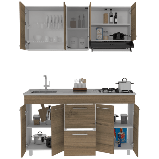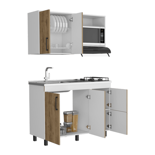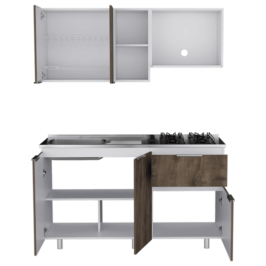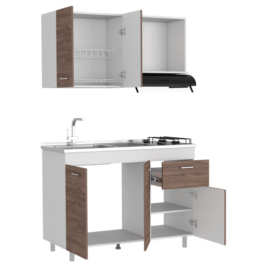Cocina Integral Ilvona Castaño Y Blanco Sin Mesón