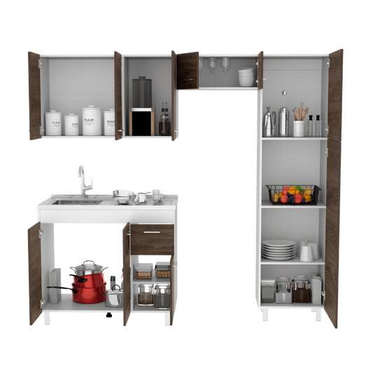 Cocina Integral Elvani Nogal Y Blanco Con Mesón Derecho