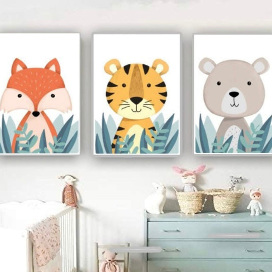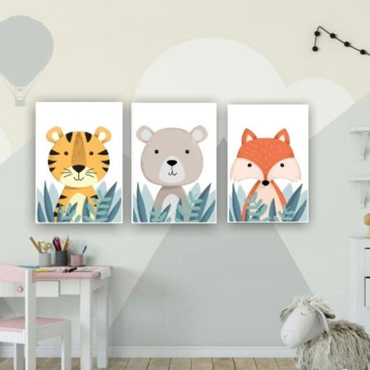 Cuadro en MDF tipo Marmol Triptico Animales Kids 70x50x5 3 Unidades