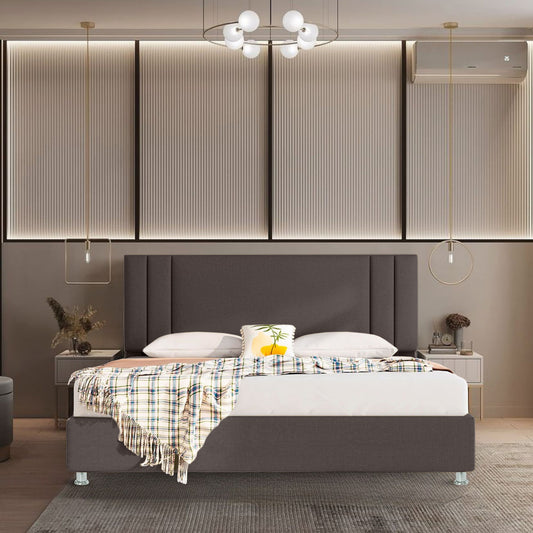 Base Cama con Espaldar + Colchon King Lupe gris plomo