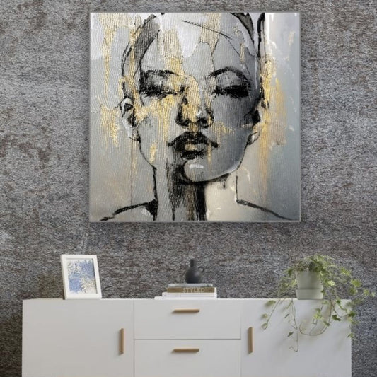 Cuadro en MDF tipo Marmol Buddha Black 40x40x5