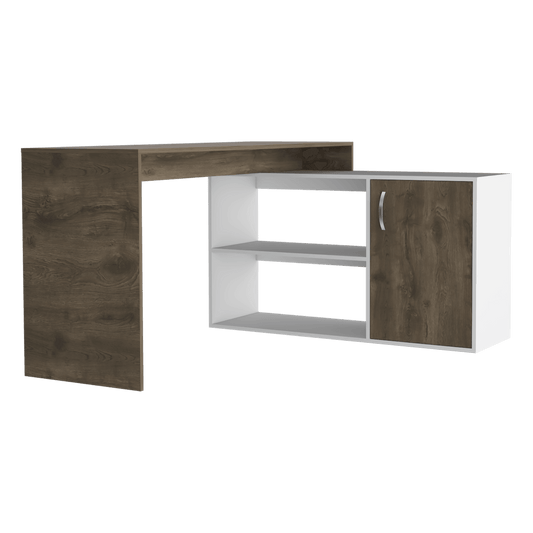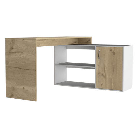 Combo Escritorio Kenvia Con Biblioteca Duna Blanco