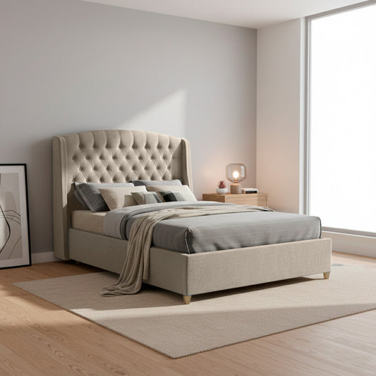 Base Cama Con Espaldar Doble Lupe Beige
