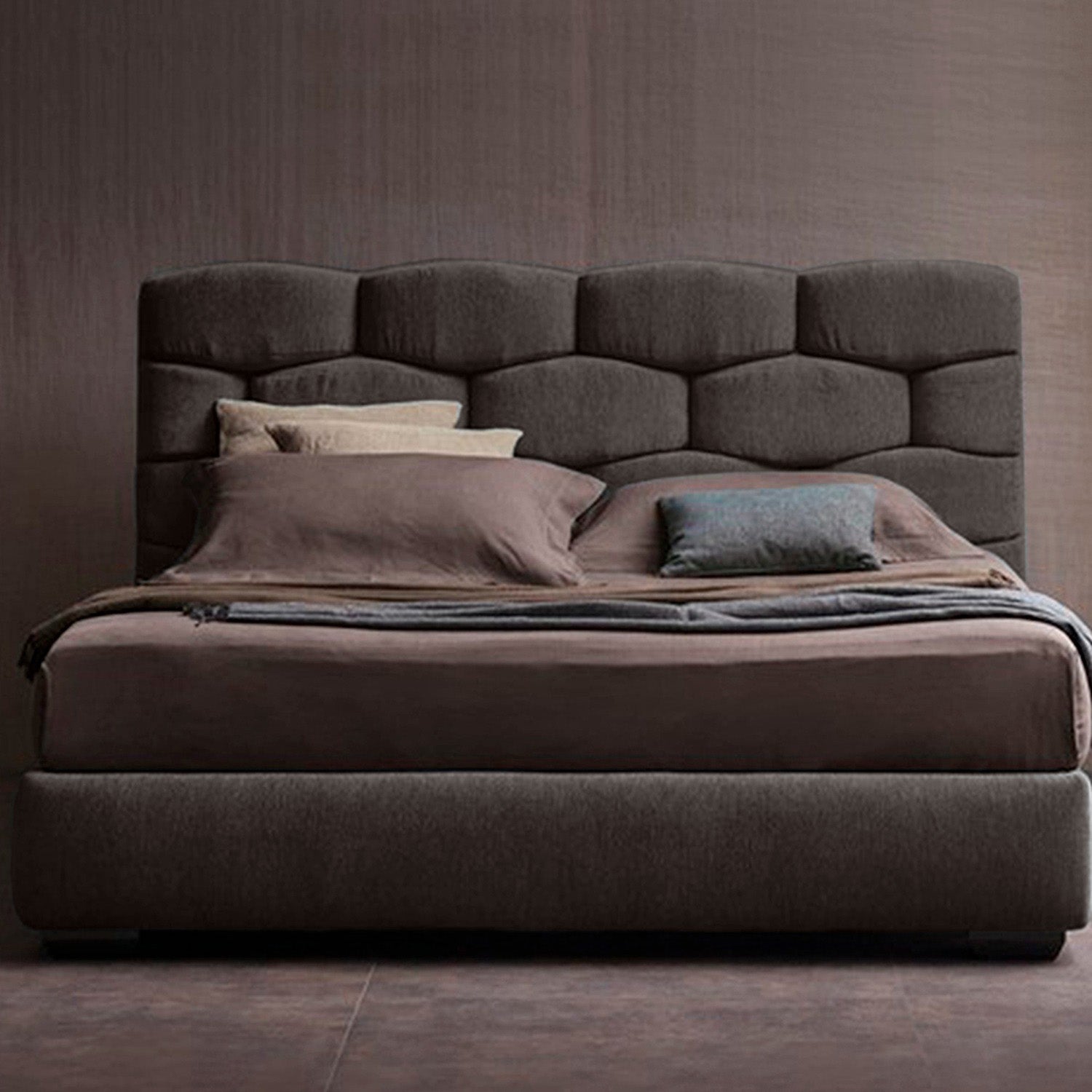 El espaldar está construido con paneles cosidos a mano individualmente, también está generosamente acolchado con espumas de alta densidad, lo que permite versatilidad en la ubicación de la habitación. El espaldar es una pieza de gran tamaño que no se puede desmontar. Recomendamos medir las entradas y los pasillos para garantizar un espacio libre, adecuado para la entrega.