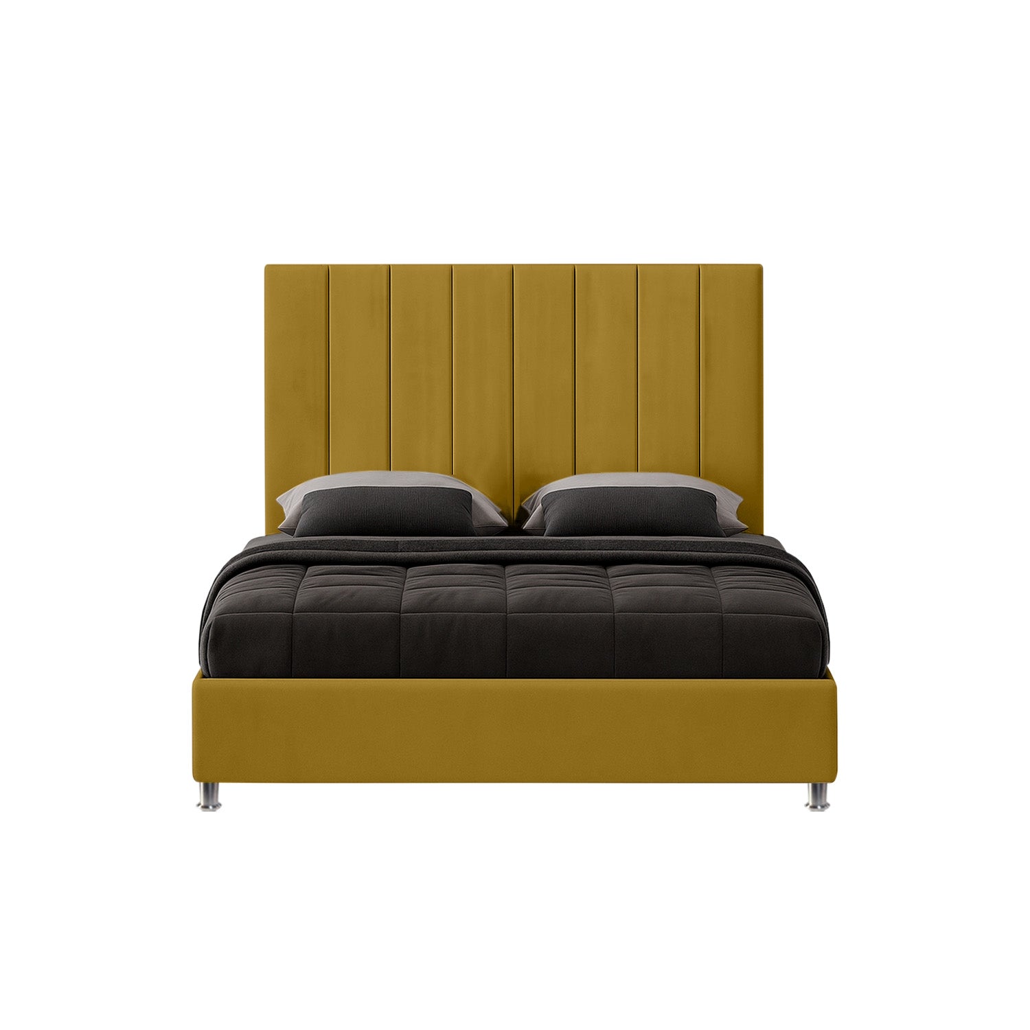 Base Cama con Espaldar + Colchon Doble Natura mostaza