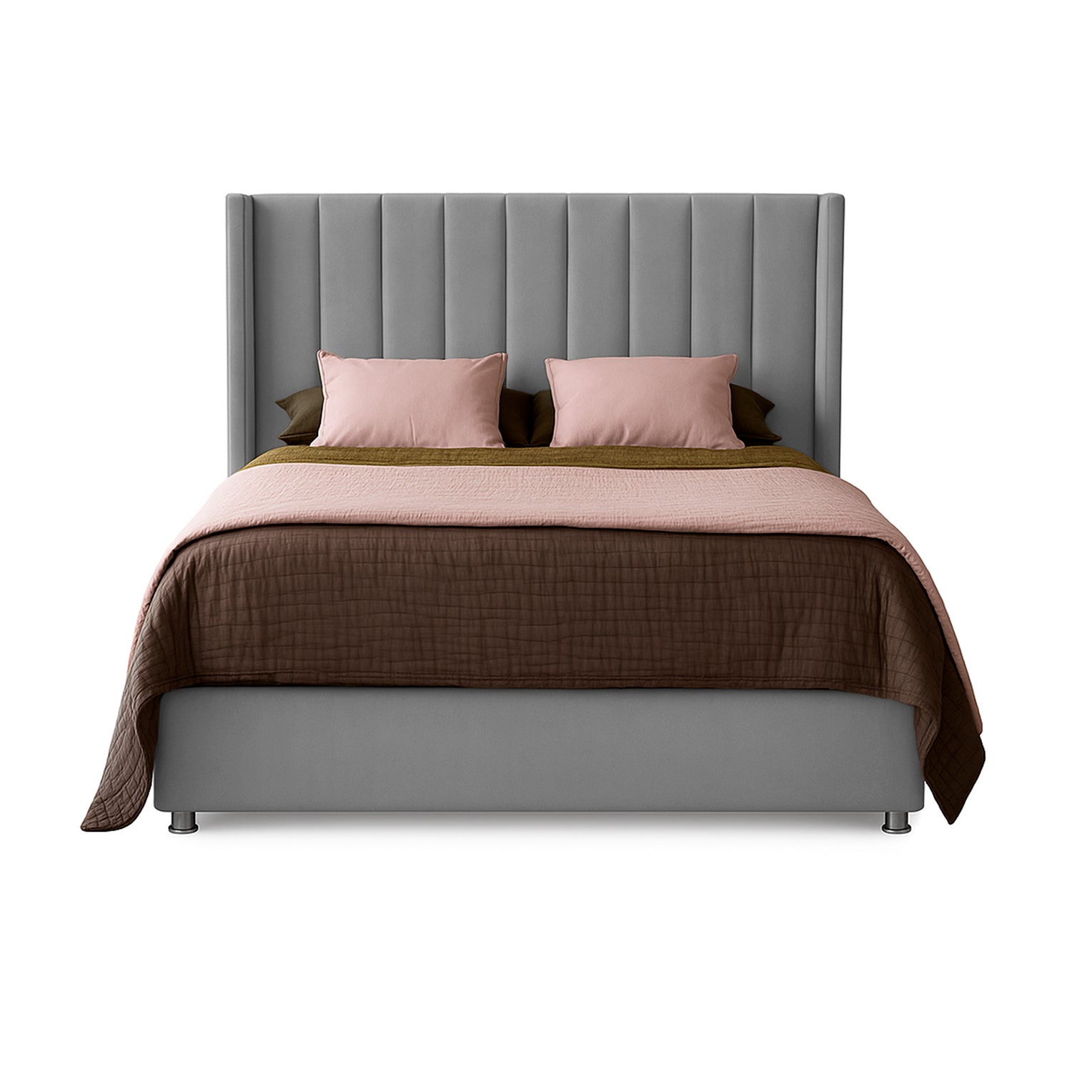 Base Cama con Espaldar + Colchon + Puff Baul Doble Julieta gris plata