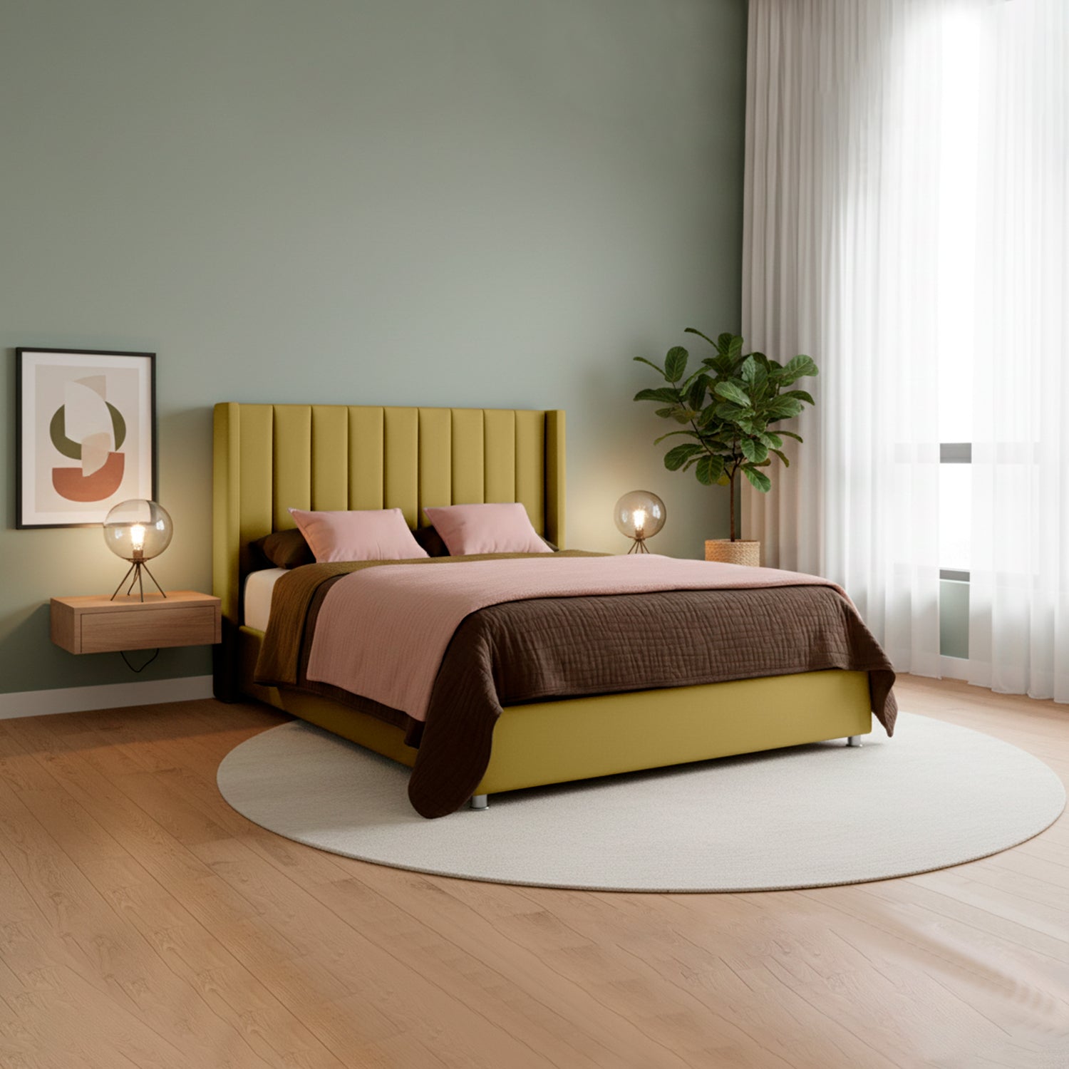 Base Cama con Espaldar + Colchon + Puff Baul King Julieta mostaza