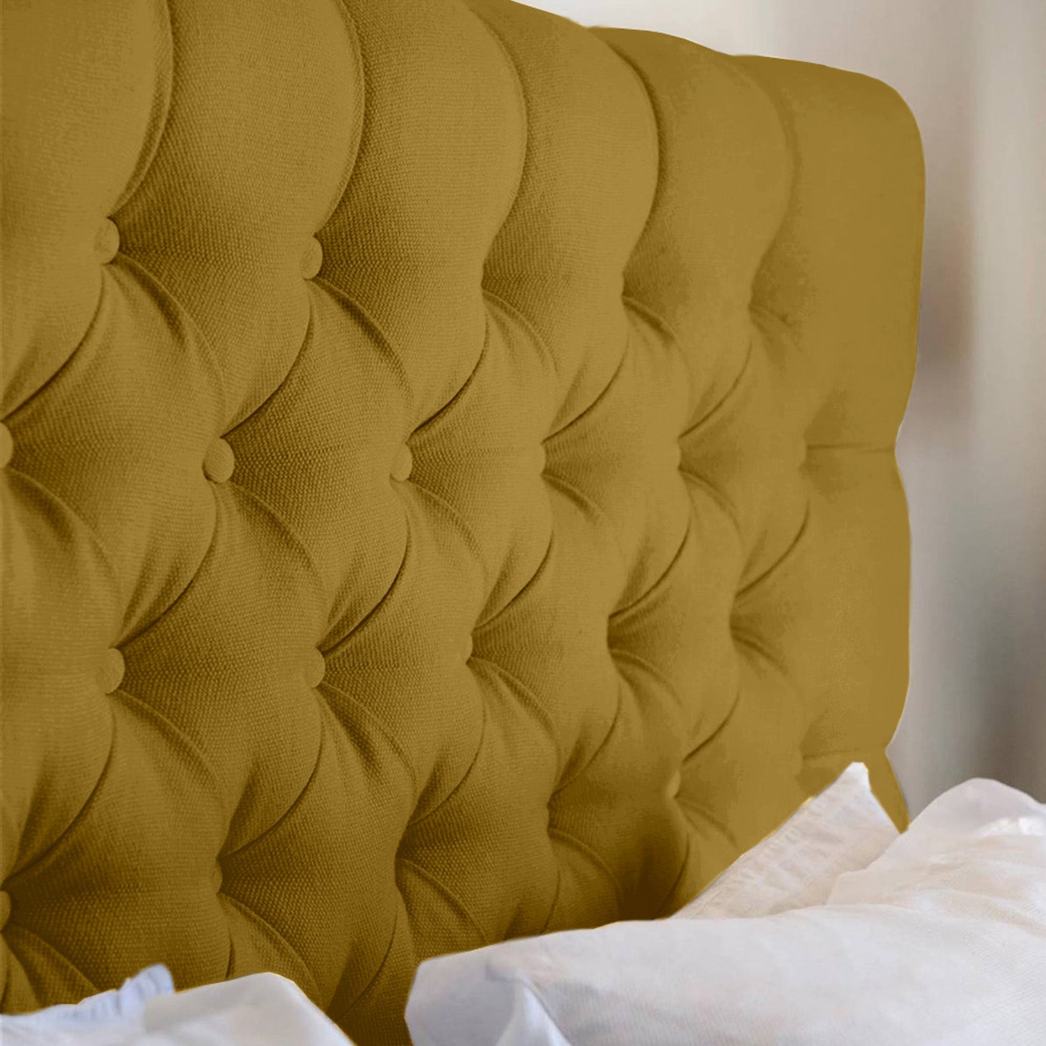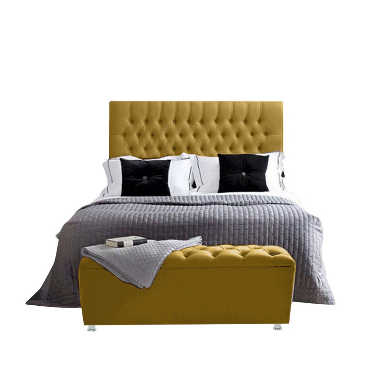 Base Cama con Espaldar + Colchon + Puff Baul King Paris Mostaza