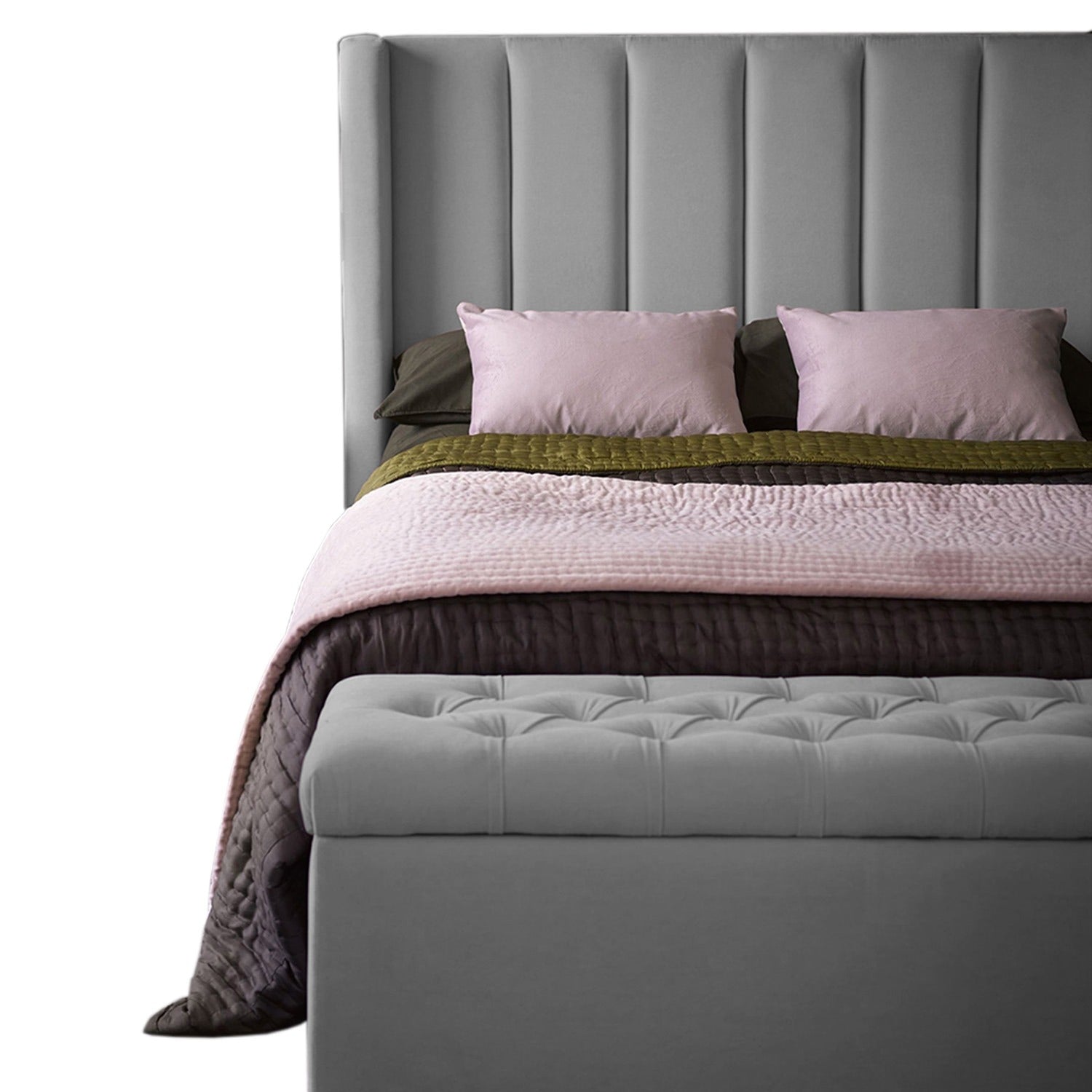 Base Cama con Espaldar + Colchon + Puff Baul Semidoble Julieta gris plata