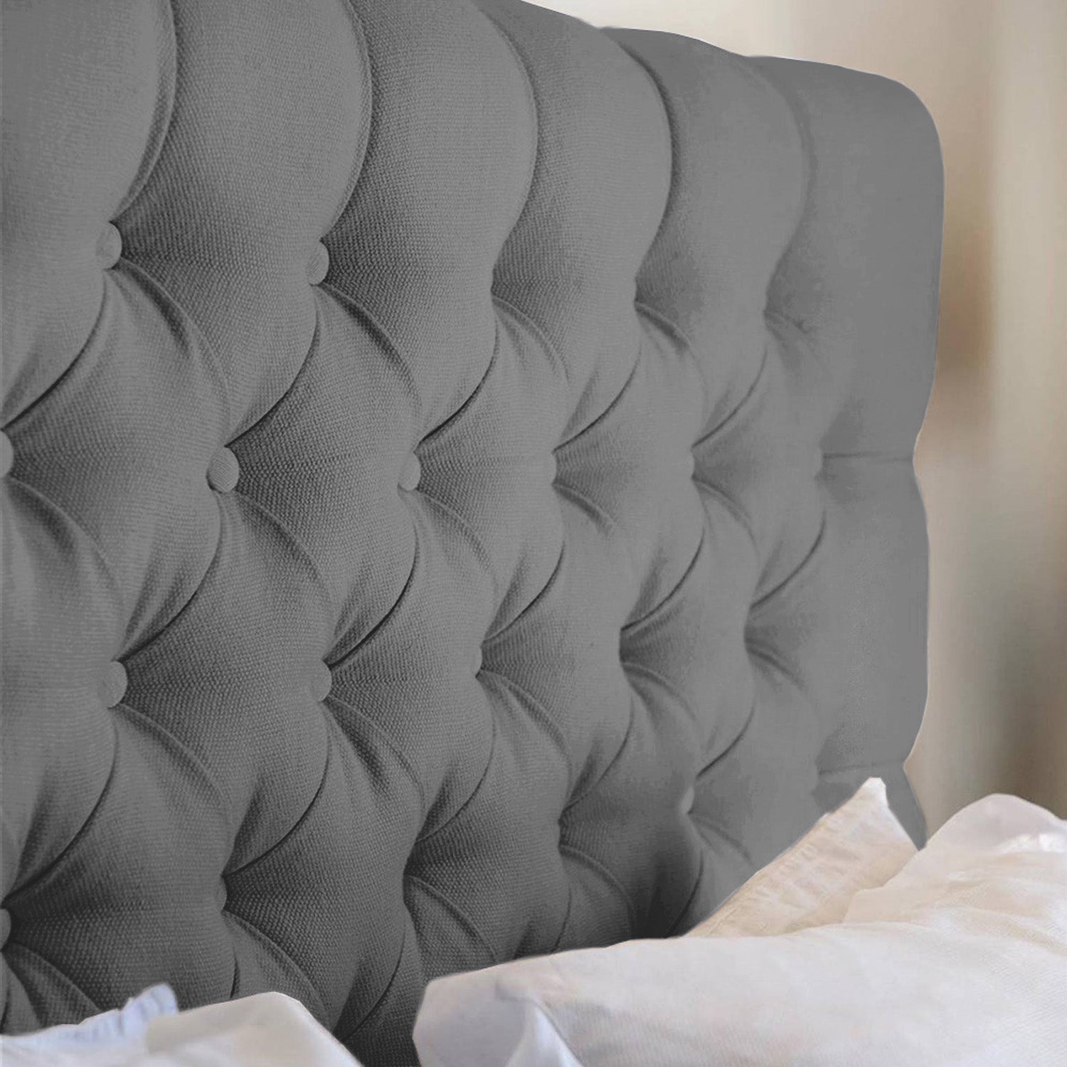 El espaldar está construido con paneles cosidos a mano individualmente, también está generosamente acolchado con espumas de alta densidad, lo que permite versatilidad en la ubicación de la habitación. El espaldar es una pieza de gran tamaño que no se puede desmontar. Recomendamos medir las entradas y los pasillos para garantizar un espacio libre, adecuado para la entrega.