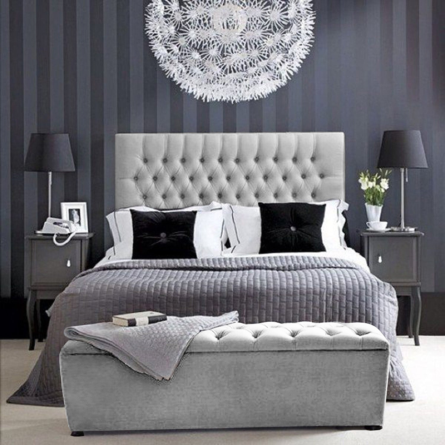 Base Cama con Espaldar + Colchon + Puff Baul Sencillo Paris gris perla