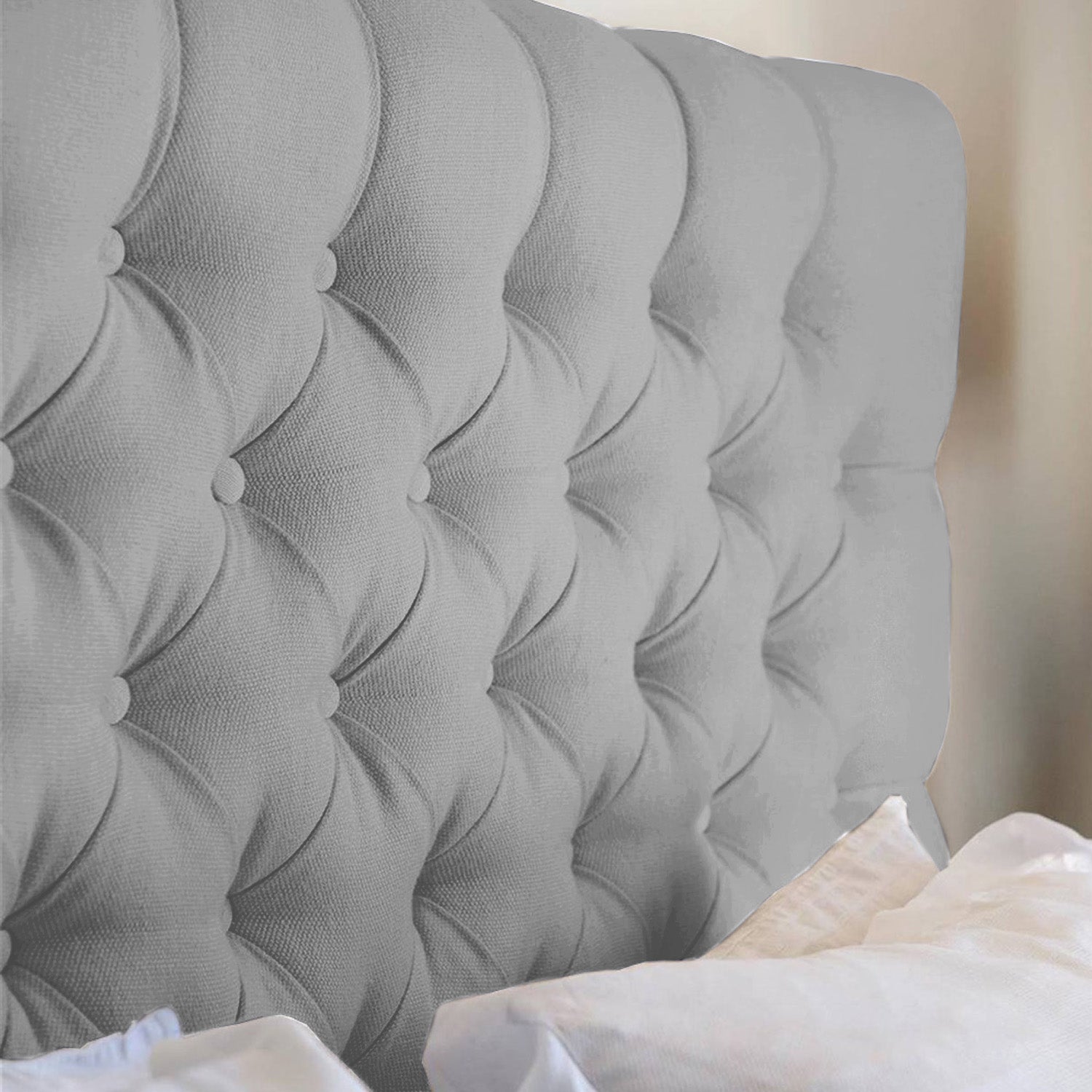 El espaldar está construido con paneles cosidos a mano individualmente, también está generosamente acolchado con espumas de alta densidad, lo que permite versatilidad en la ubicación de la habitación. El espaldar es una pieza de gran tamaño que no se puede desmontar. Recomendamos medir las entradas y los pasillos para garantizar un espacio libre, adecuado para la entrega.