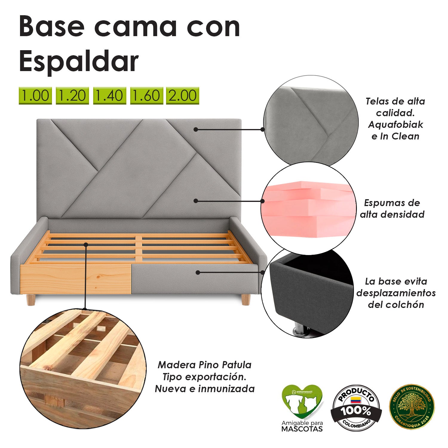 Conformada por espaldar y base tipo cama que encajan a la medida. Diseño moderno para darle un estilo único a nuestra habitación.