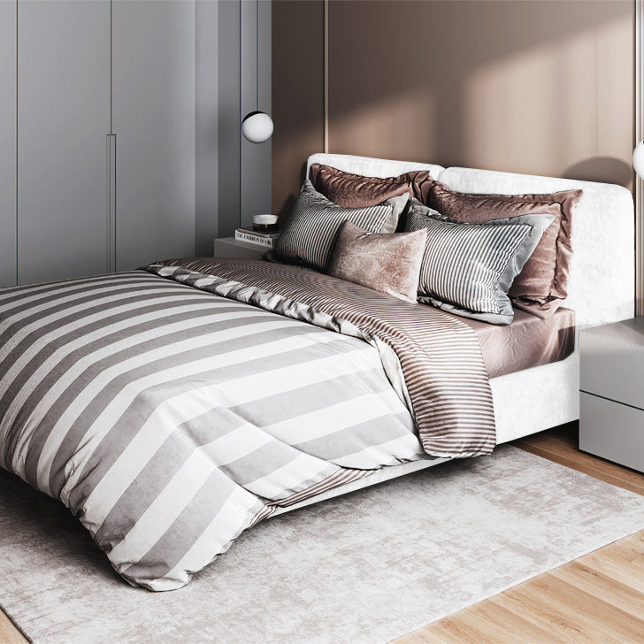 El espaldar está construido con paneles cosidos a mano individualmente, también está generosamente acolchado con espumas de alta densidad, lo que permite versatilidad en la ubicación de la habitación. El espaldar es una pieza de gran tamaño que no se puede desmontar. Recomendamos medir las entradas y los pasillos para garantizar un espacio libre, adecuado para la entrega.