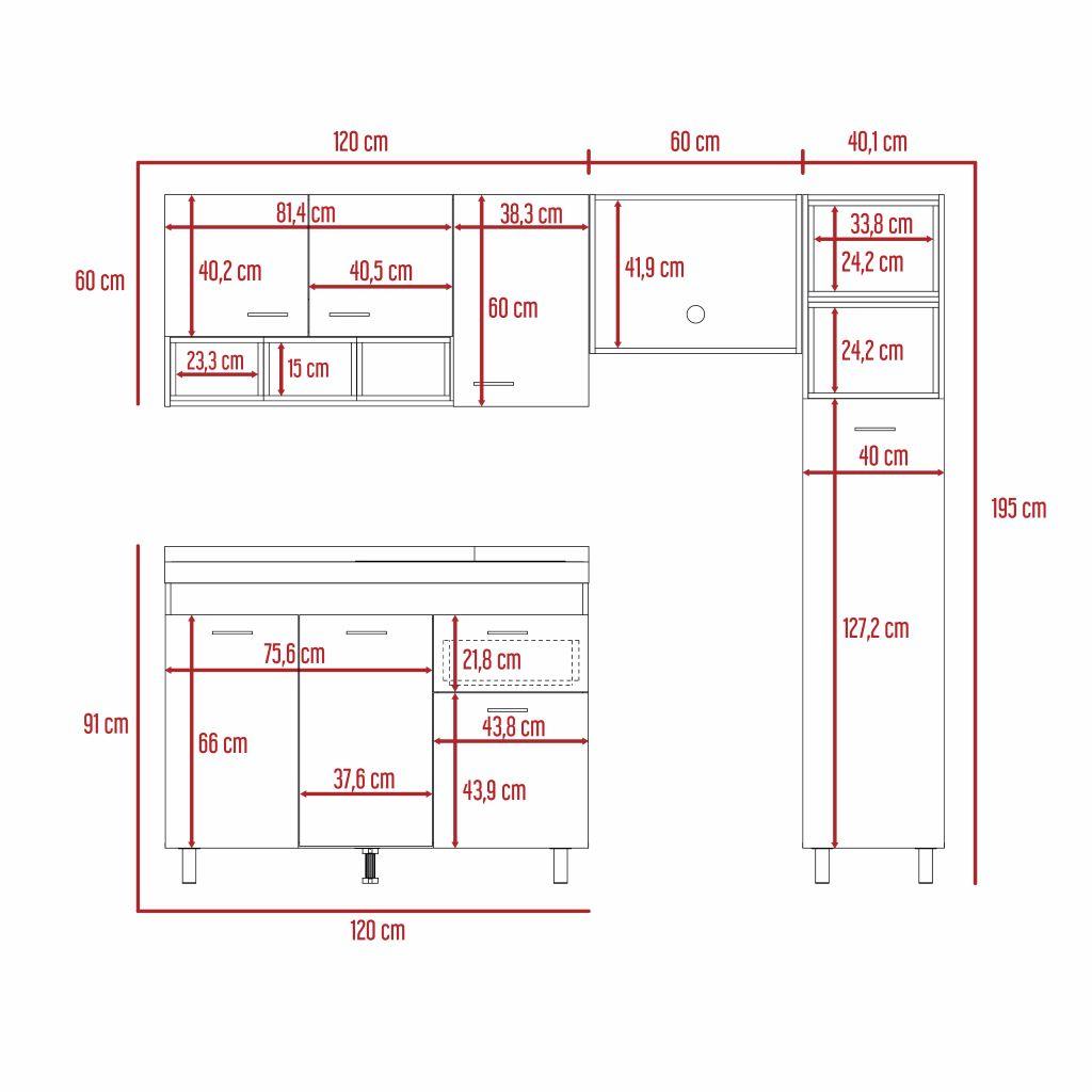 Cocina Integral Amirel Nacar Y Blanco Con Mesón Izquierdo