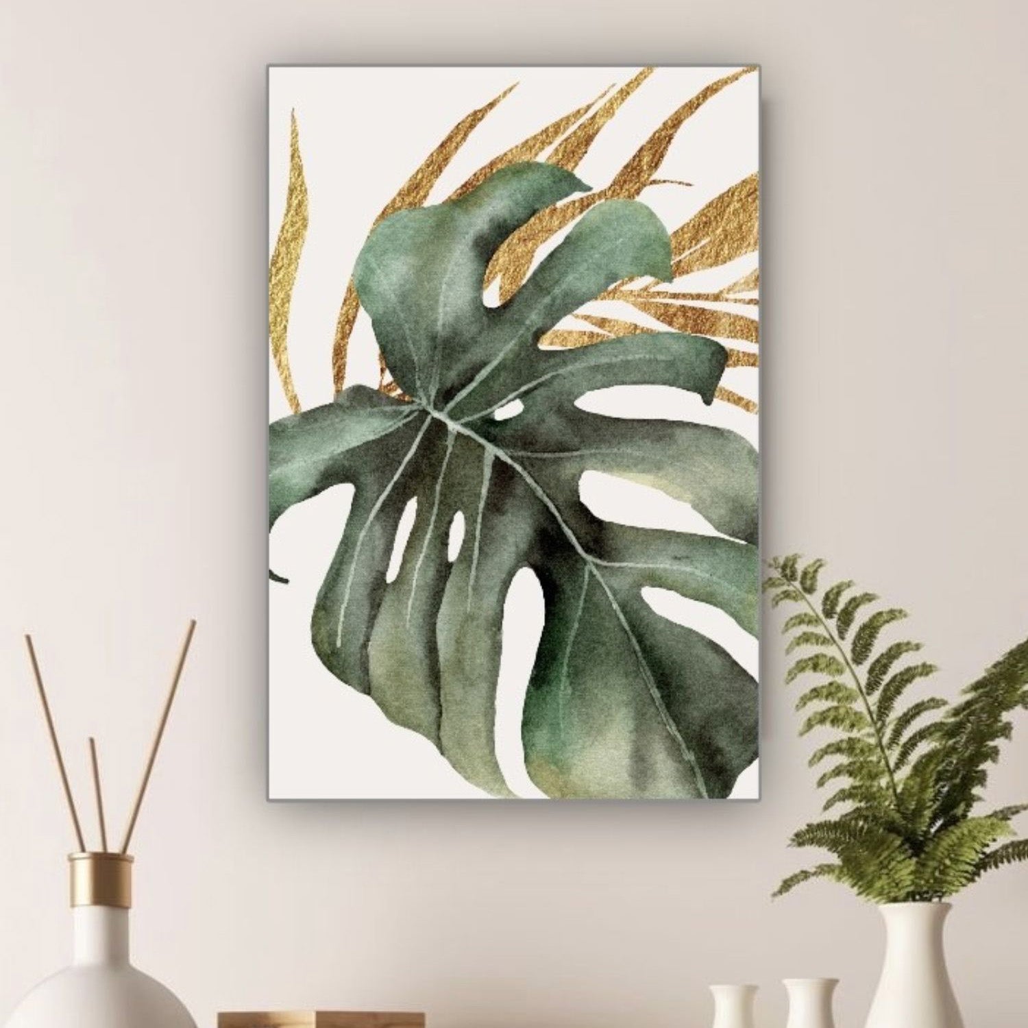 Cuadro en MDF tipo Marmol Planta Gold 40x40x5