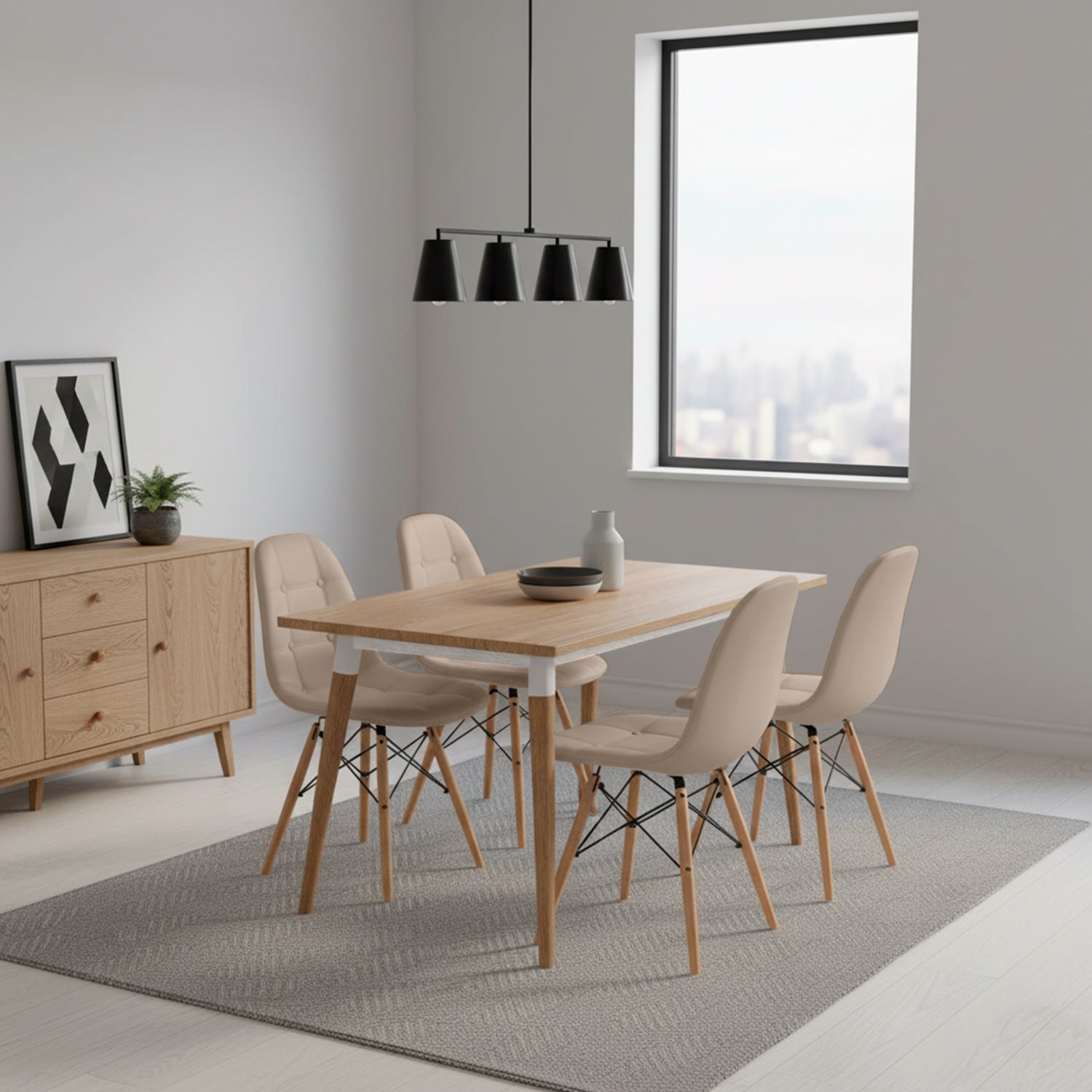 Juego de Comedor Premium Kano con 4 Sillas Eames botones camel