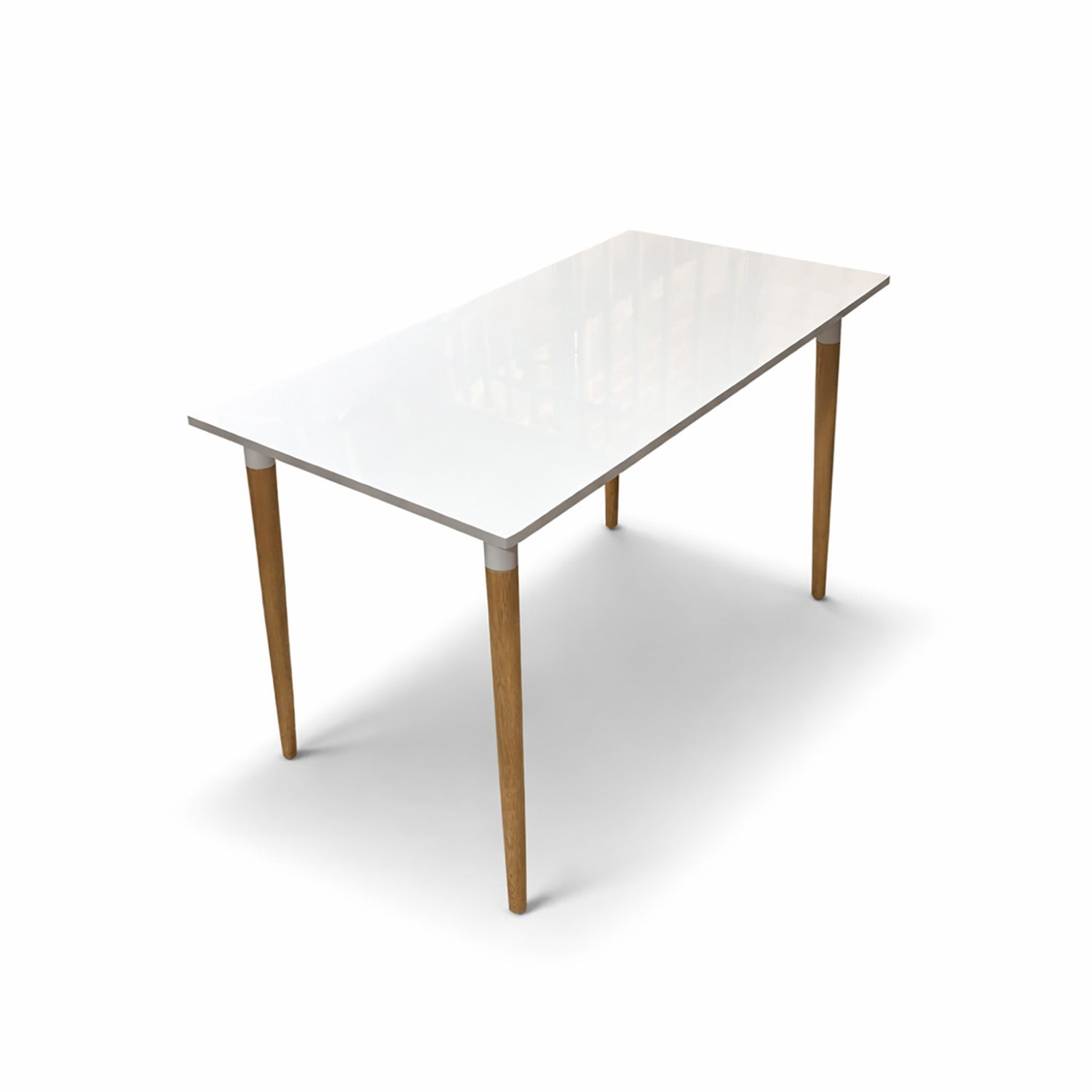 Comedor moderno con estructura en MDF de 21mm, enchapado en Formica brillante y patas en Madera con Acabado en Roble.