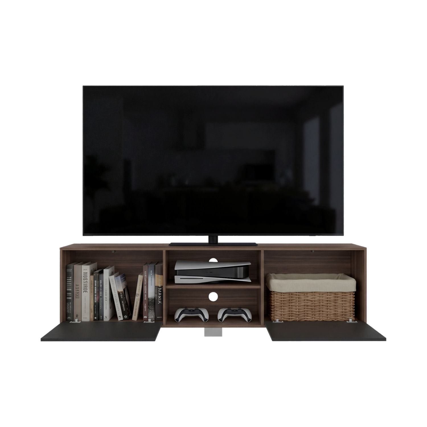 Mesa para TV, con 2 puertas batientes y varios entrepaños.
